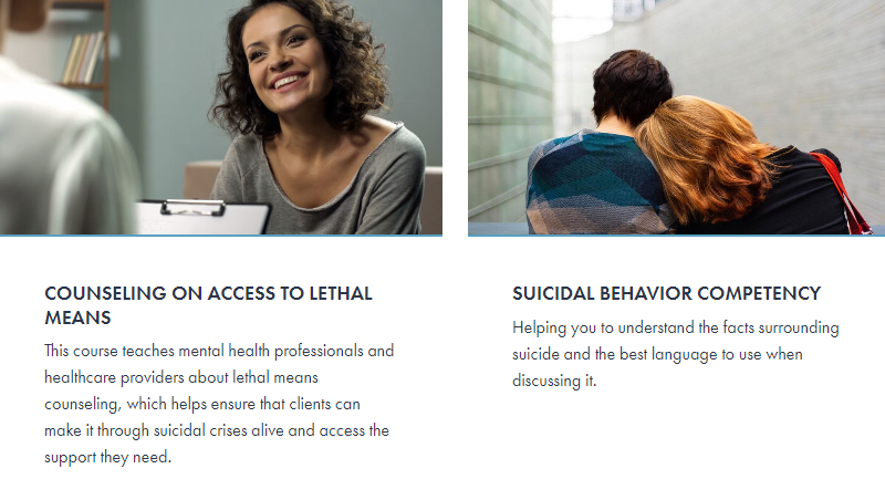 - Counseling on Access to Lethal Means (CALM) Zero Suicide (edc.org) Training and free CEUs are available using the above mentioned PsychHub: https://resources.psychhub.com/molina